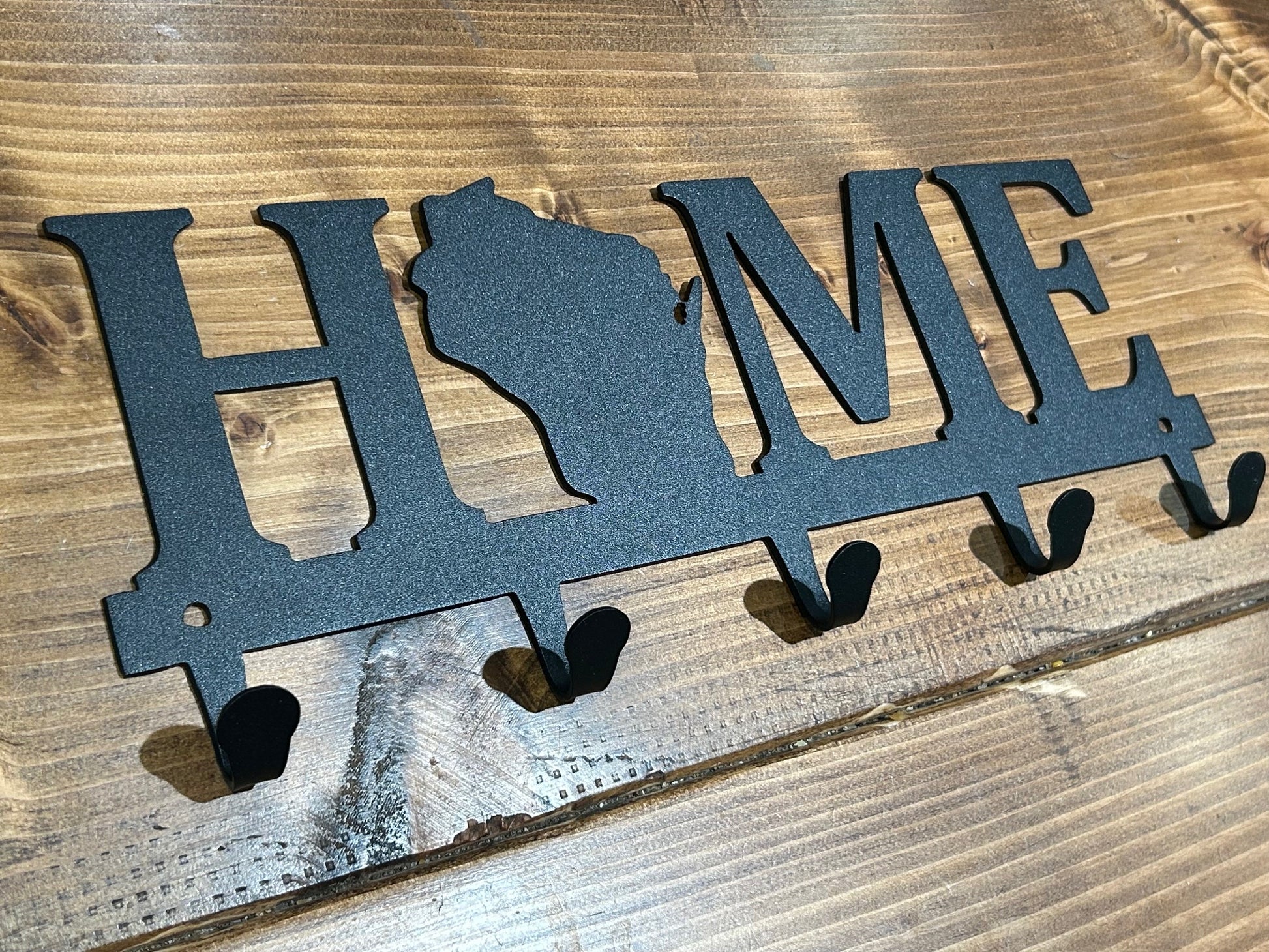Keep keys organized in style with our Home State keychain holder with hooks, a functional and personalized metal organizer for entryways, mudrooms, and offices. Featuring your chosen state silhouette wall décor, this key holder is a perfect blend of home organization and custom state décor for everyday convenience.